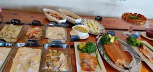 • Rökt vildsvin •Rökt abborre • Ostar & nybakat bröd • Bruschetta med örter •Nässelpaj • Hornuddskorv • Ägg m.m