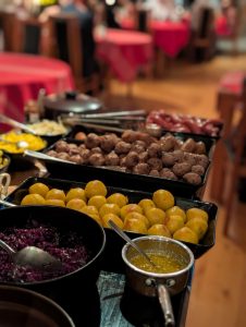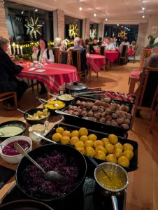 Vinnare blev ”Saffranskroppkakor med trattkantareller” och det var svampkonsulent Hasse Lagenius som skickat in receptet. Vi serverar i år dessa kroppkakor (med små justeringar – timjan istf persilja och ingen kryddpeppar) på våra adventsbufféer – ett smakrikt och färgglatt inslag. Hur det blir nästa år får vi se för det är en tidskrävande procedur eftersom vi gör dem små (32-35 g potatismassa) och även om det är väl mödan värt så är ibland tiden vår största utmaning i dessa tider.